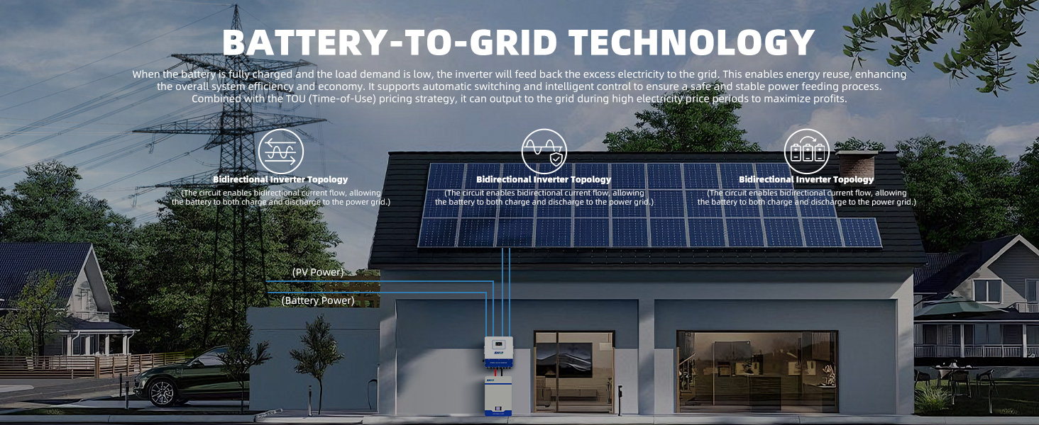 When the battery is fully charged and the load demand is low, the inverter can feed excess power back to the grid, enabling efficient energy reuse and improved overall performance.