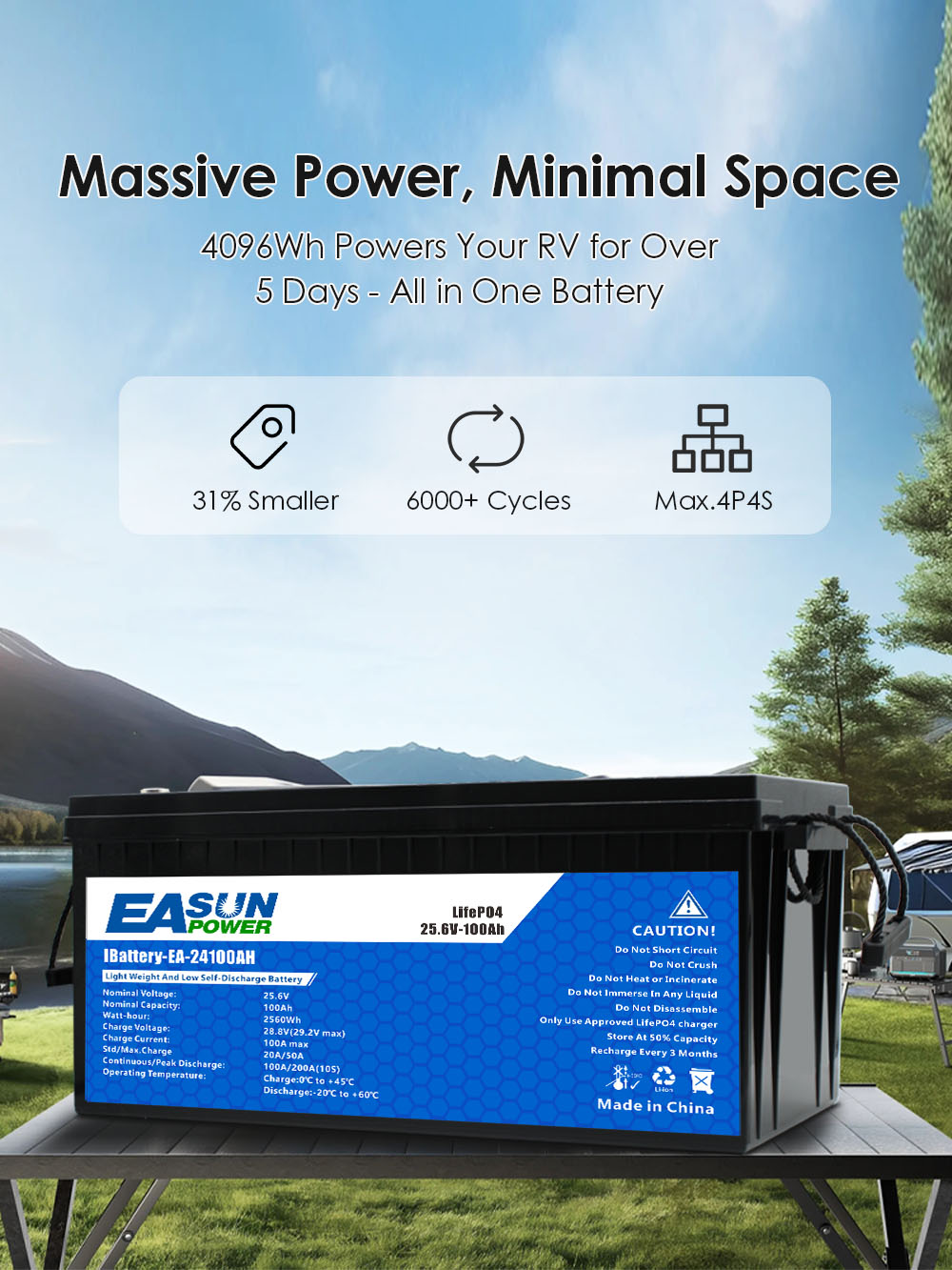Easunpower batteries offer durability, efficient power and unbeatable pricing. Switch to lithium for a longer cycle life and a better energy experience.